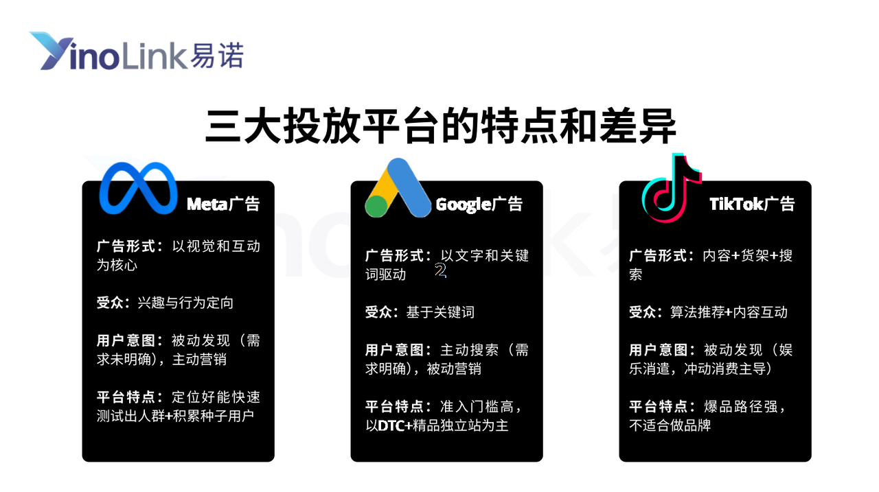 YinoLink易诺将带大家回顾本次10月24日【官方攻略,旺季共赢:多平台解读2025旺季决胜点】独立站专场直播内容,从Meta官方认可代理商的角度,详细为大家介绍了跨境电商行业的格局和趋势、三大投放平台的差异和特点、Meta广告投放的相关内容。
